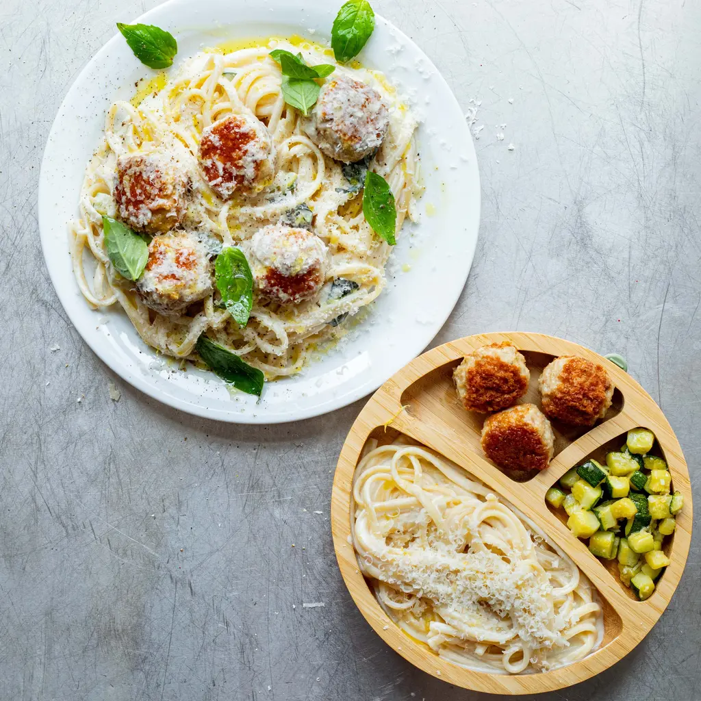 Cream Cheese Pasta with Crispy Chicken Meatballs