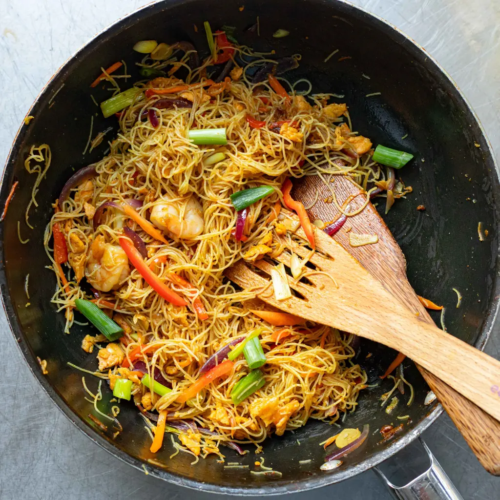 Singapore Curry Noodles with Prawns & Fluffy Eggs