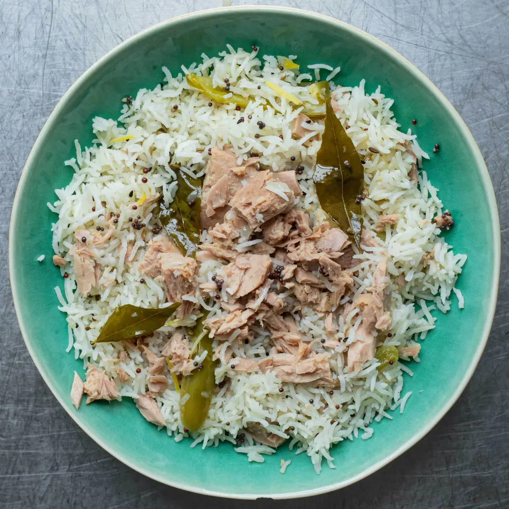 Spiced Lemon Rice with Curry Leaves, Lemon Peel & Tuna