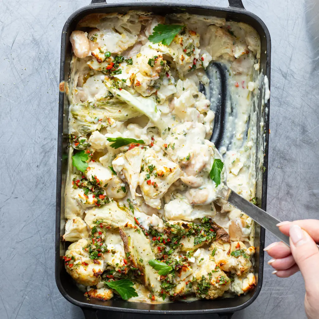 Cauliflower Cheese Beans with Preserved Lemon Salsa