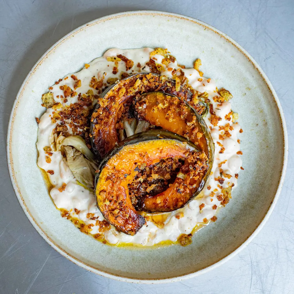 Delica Pumpkin with White Beans, Radicchio & Rosemary Pangrattato