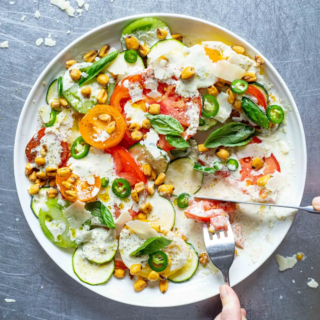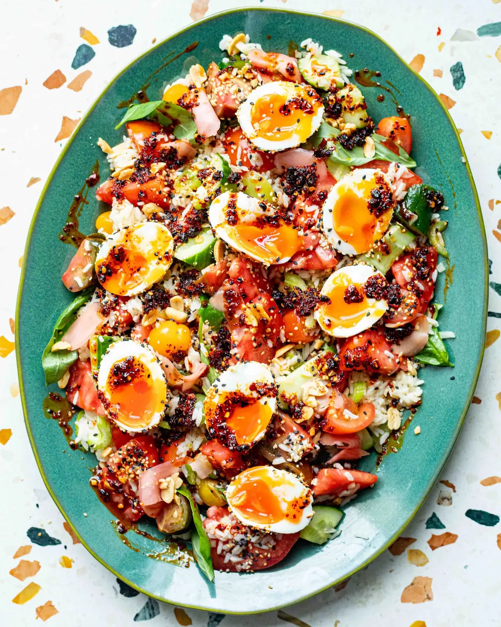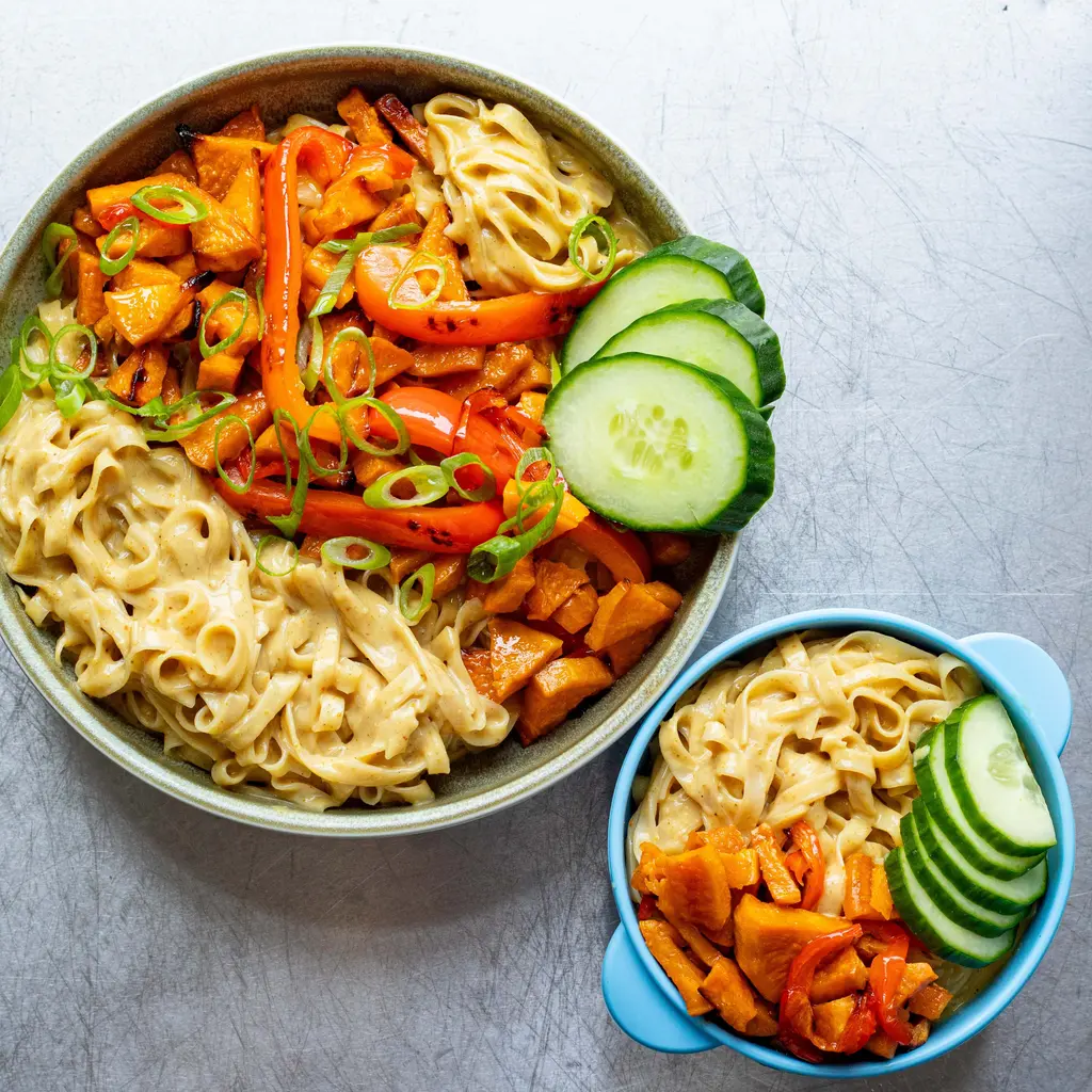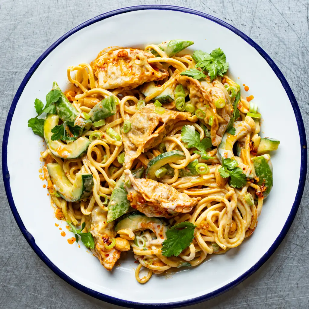 Dumpling Noodle Salad with Creamy Sesame & Crispy Chilli Dressing