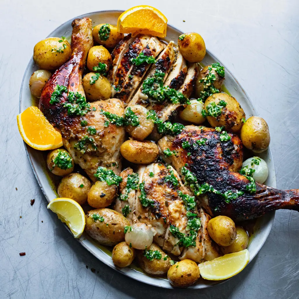 Citrusy Miso Roast Chicken with Pickled Chilli & Chive Dressing