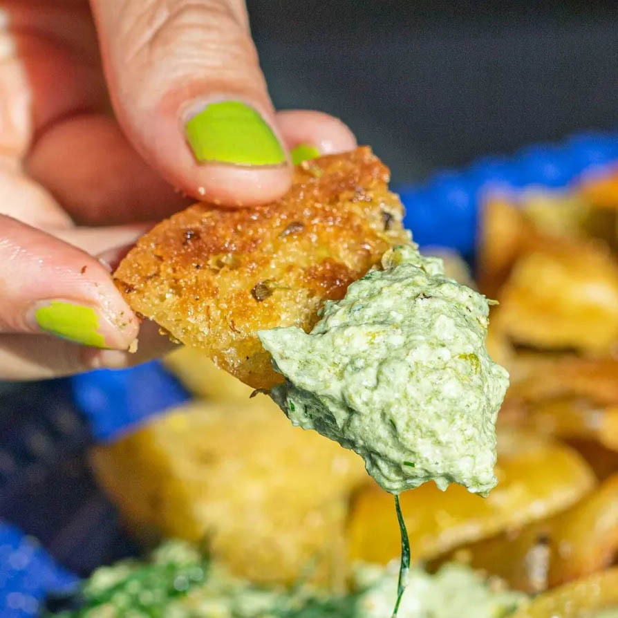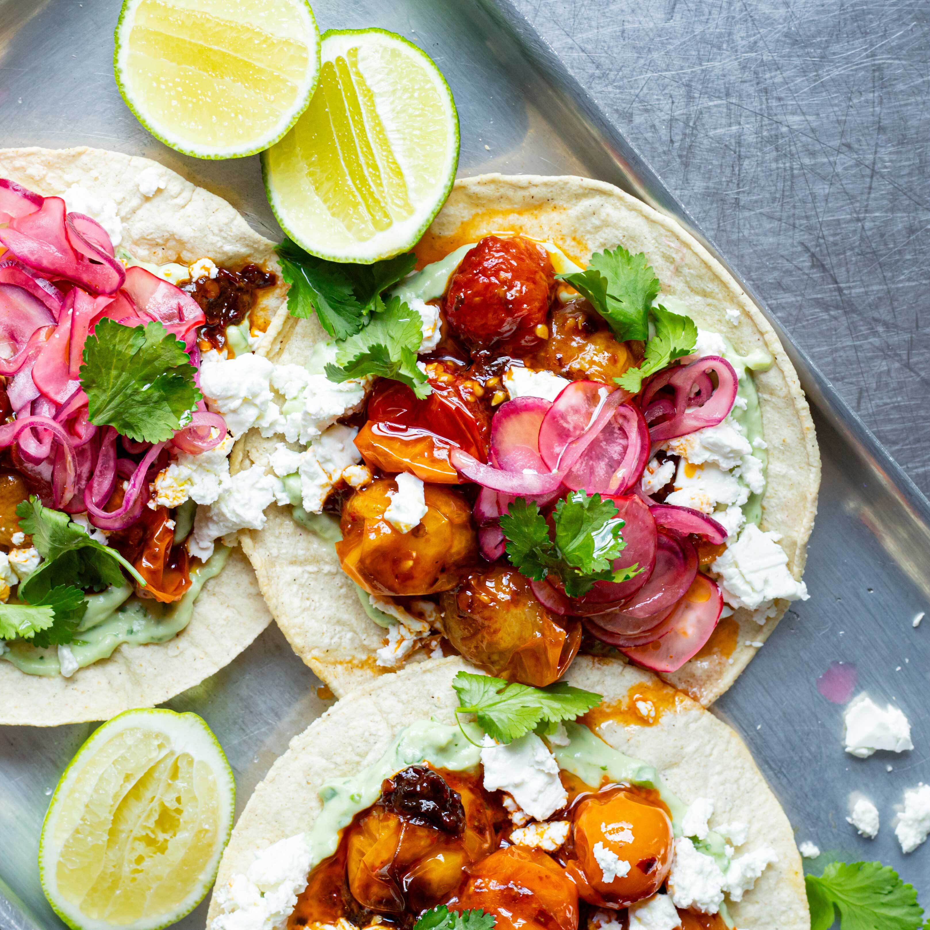 Air Fryer Chipotle Tomato Tostadas with Feta & Limey Pickles
