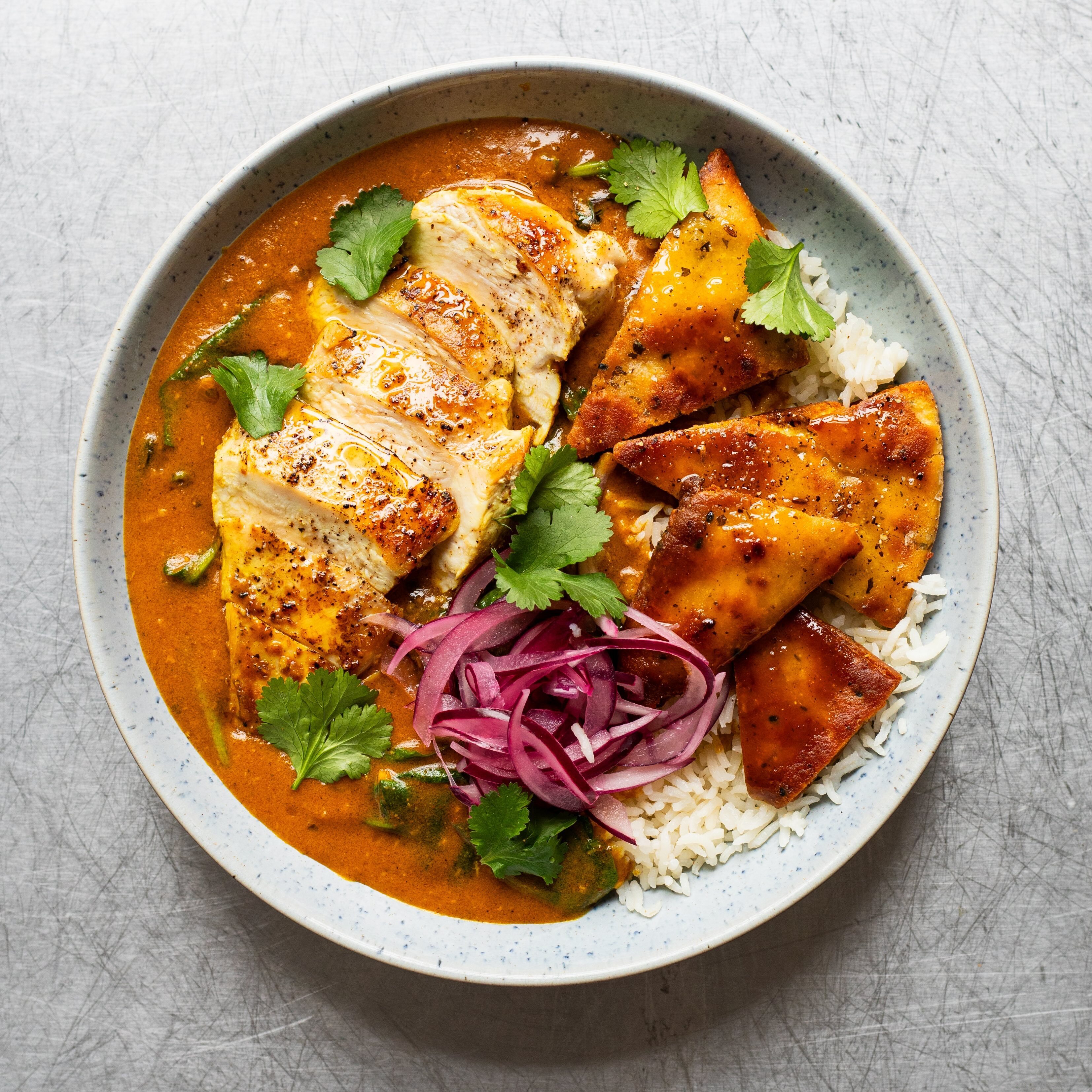 Chicken Korma with Naan Croutons