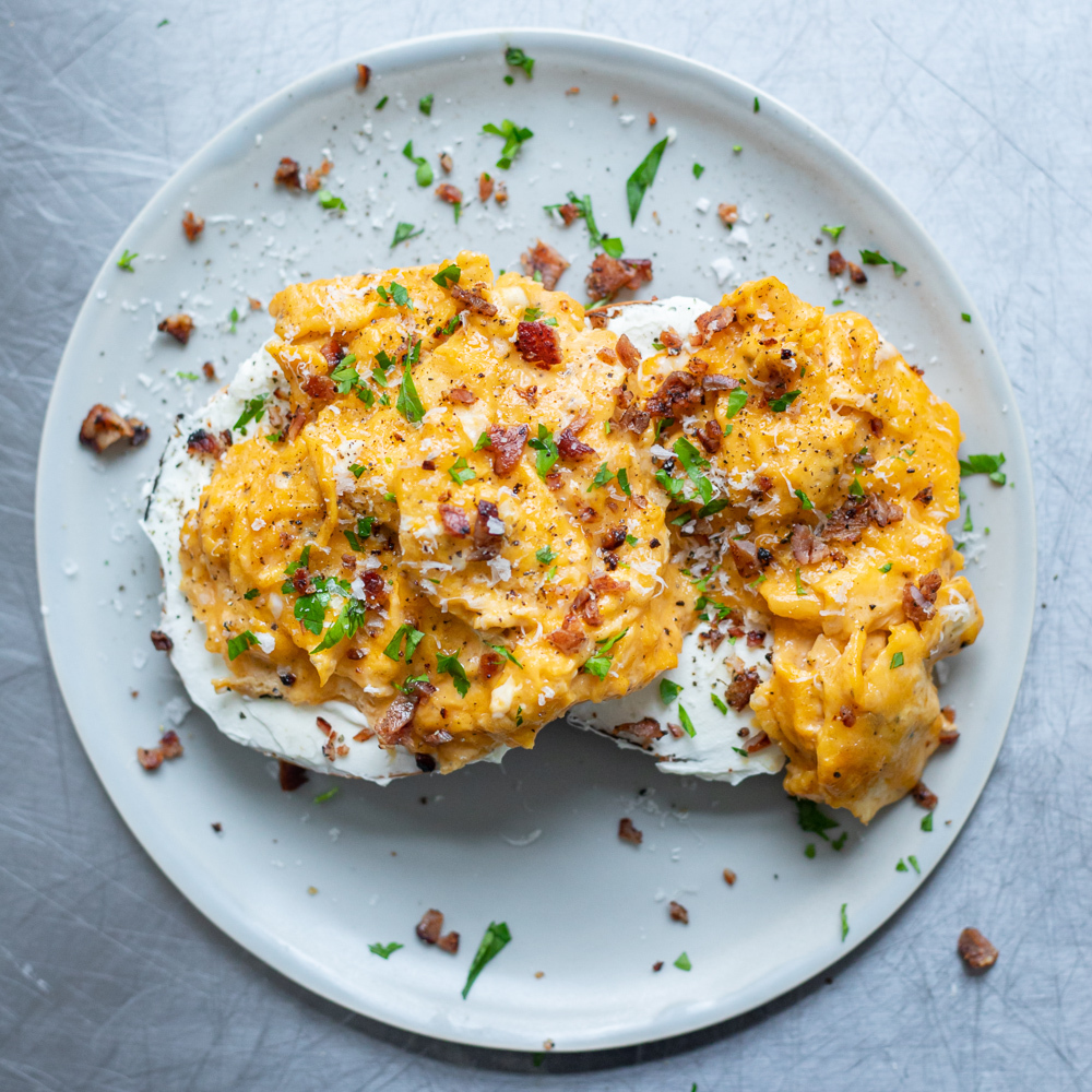 Creamy Parm Egg Bagel with Bacon