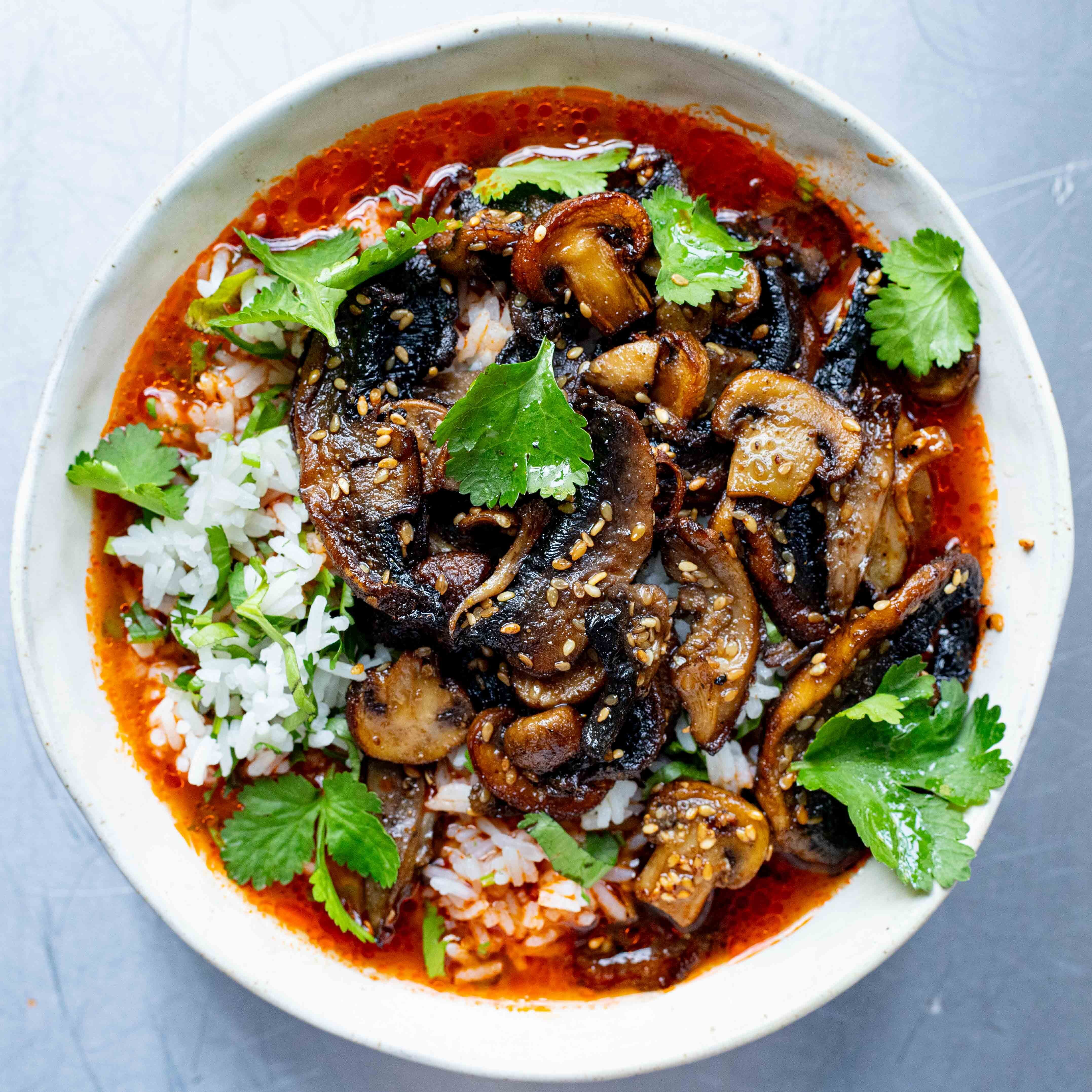 Smoky Spicy Broth with Mushrooms & Rice