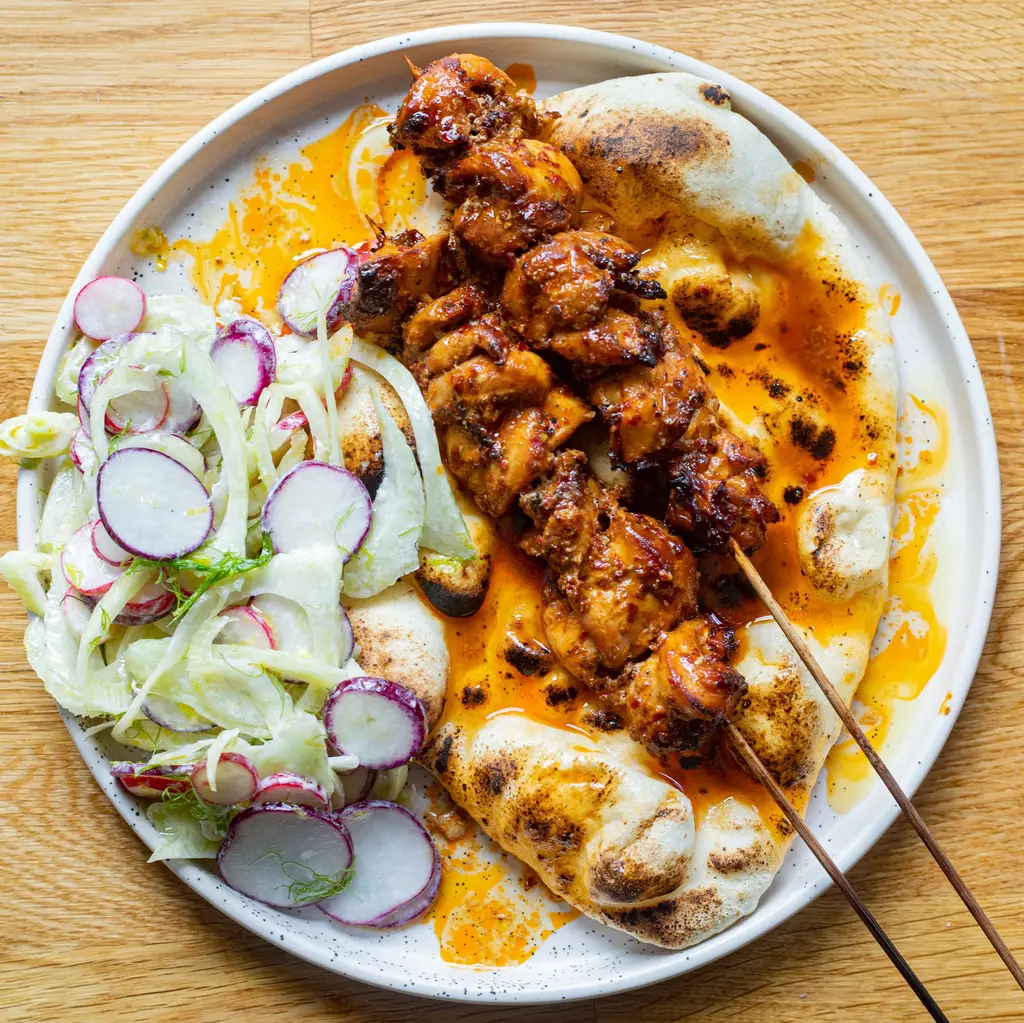 Harissa Chicken Skewers & Zesty Yoghurt Slaw