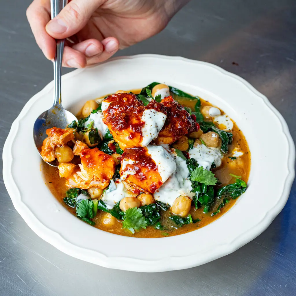 Harissa Salmon with Chickpeas & Lime Yoghurt