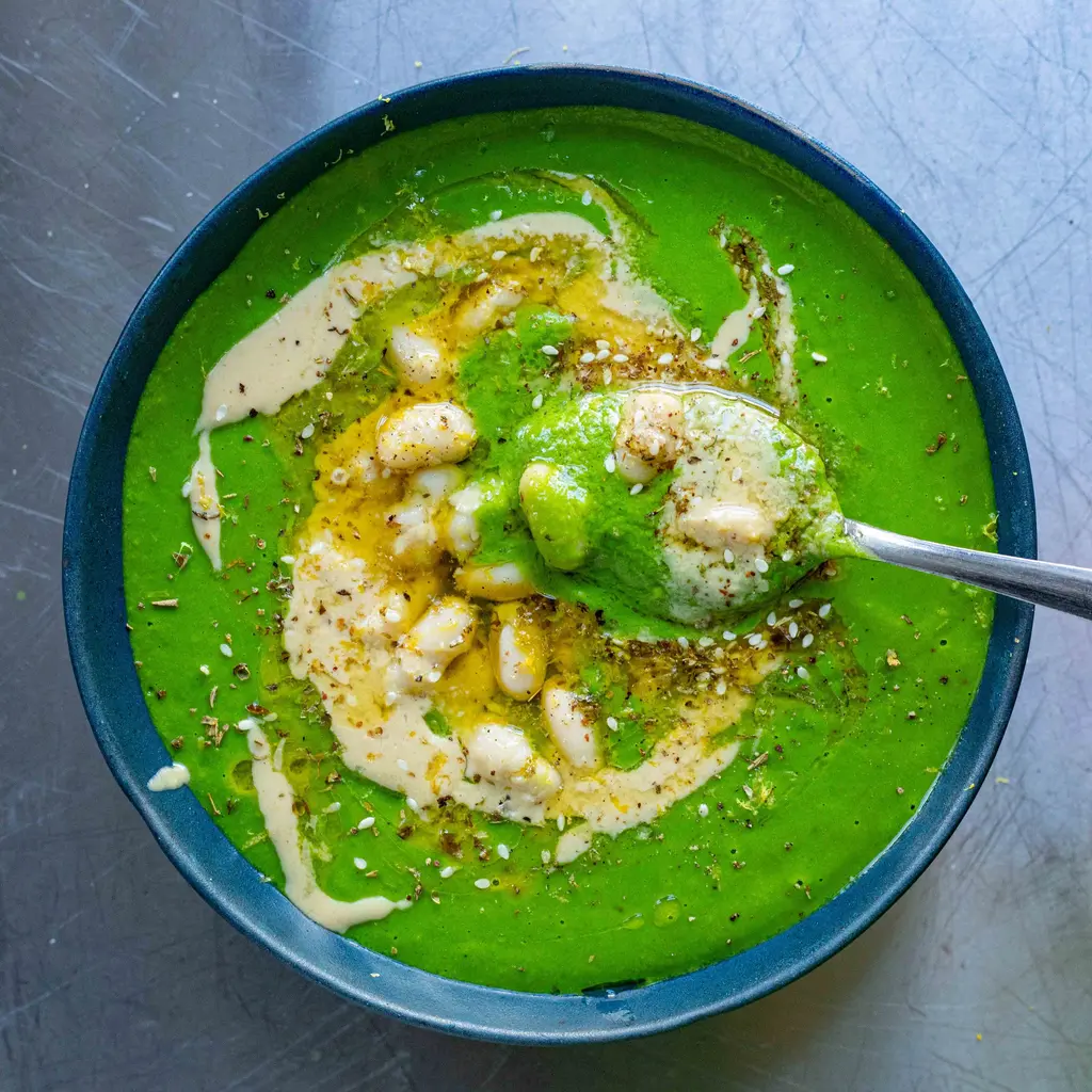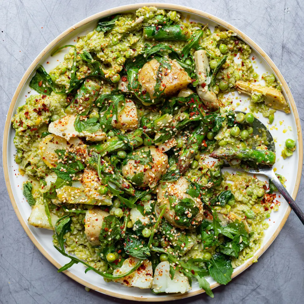 Whipped Pea, Artichoke & Za’atar with New Potatoes
